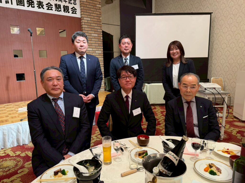 昨年度の実績などを振り返りつつ、目標を来賓の方々の前で発表しました。優秀社員賞の表彰も行いました。最優秀社員賞は、総務の女性社員です。毎日明るく元気に仕事に励んでくれています。これからも、持ち前の明るさに加えて、仕事にも邁進してくれると思います。