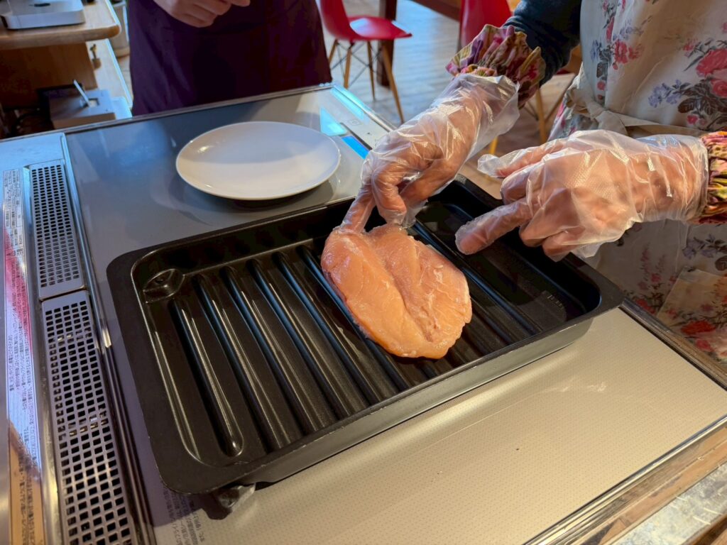 パナソニックのIHは低温調理(80℃)が可能なので、じっくり火を通しておいしく出来上がりました。